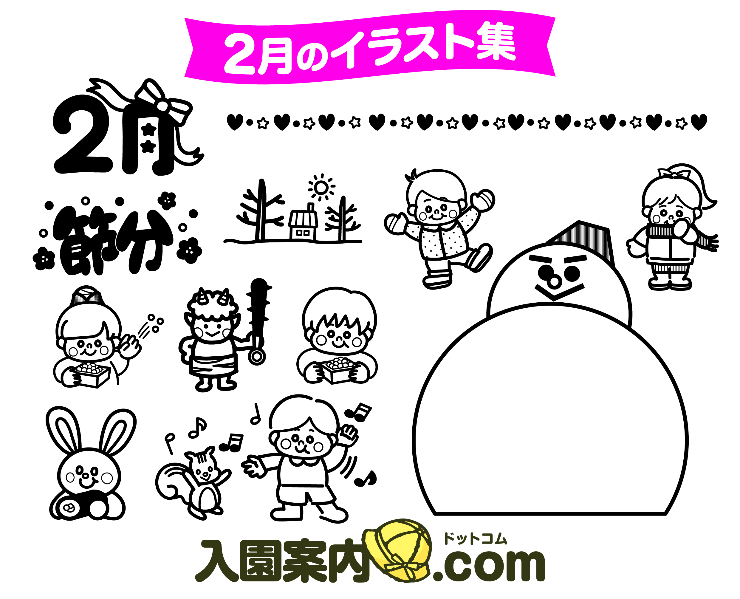 2月のイラストダウンロード(3.1MB) │ 季節のイラスト&お便り文例集
