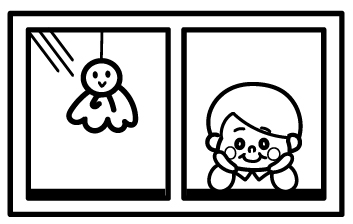●雨の日ばかり続くので、みんなで“てるてる坊主”を作りました。「自由に顔を描いていいよ」と言うと、ニコニコ笑顔、ウィンク顔、雨ばかりで泣いている顔や怒っている顔、アンパンマンの顔(笑)、個性豊かな“てるてる坊主”が出来上がりました。窓に並べて「晴れますように!」と毎日お祈りしています。
