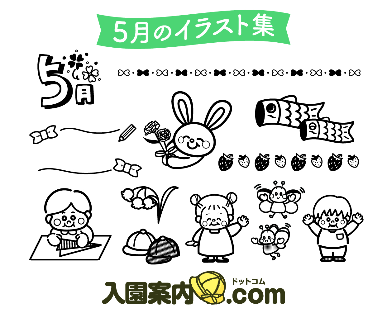 5月のモノクロイラストダウンロード(2.8MB) │ 季節のイラスト&お便り文例集