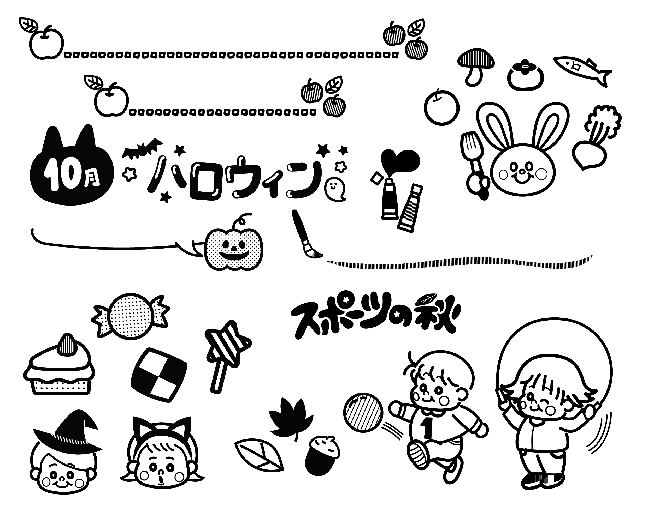10月イラスト(モノクロ/背景白)4MB / 10月イラスト(カラー/背景透明)6MB