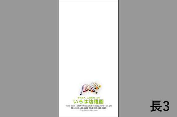 ※同じデザインのパンフレットはこちら>> ※ご希望であれば長3封筒を横向きのデザインに変更することが可能です。