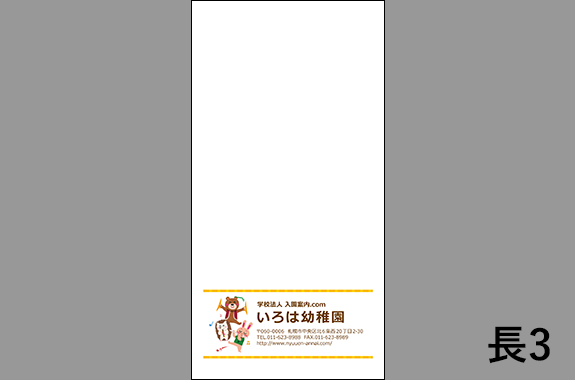 ※同じデザインのパンフレットはこちら>> ※ご希望であれば長3封筒を横向きのデザインに変更することが可能です。