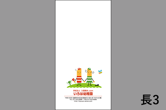 ※同じデザインのパンフレットはこちら>> ※ご希望であれば長3封筒を横向きのデザインに変更することが可能です。