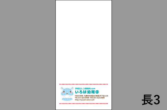 ※同じデザインのパンフレットはこちら>> ※ご希望であれば長3封筒を横向きのデザインに変更することが可能です。