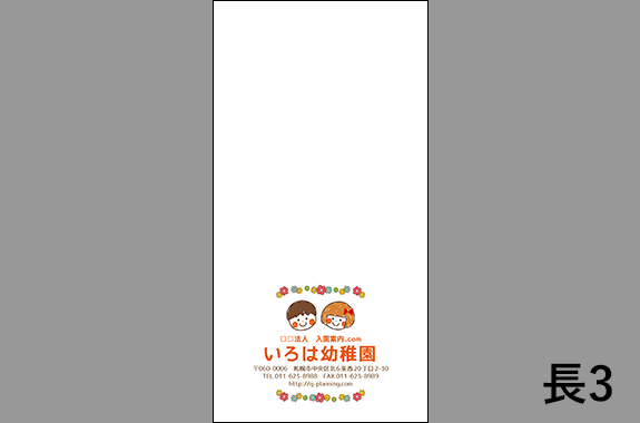 ※同じデザインのパンフレットはこちら>> ※ご希望であれば長3封筒を横向きのデザインに変更することが可能です。