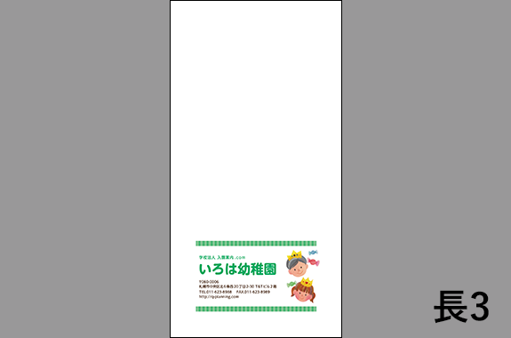 ※同じデザインのパンフレットはこちら>> ※ご希望であれば長3封筒を横向きのデザインに変更することが可能です。
