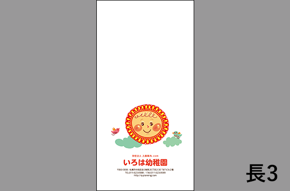 ※同じデザインのパンフレットはこちら>> ※ご希望であれば長3封筒を横向きのデザインに変更することが可能です。